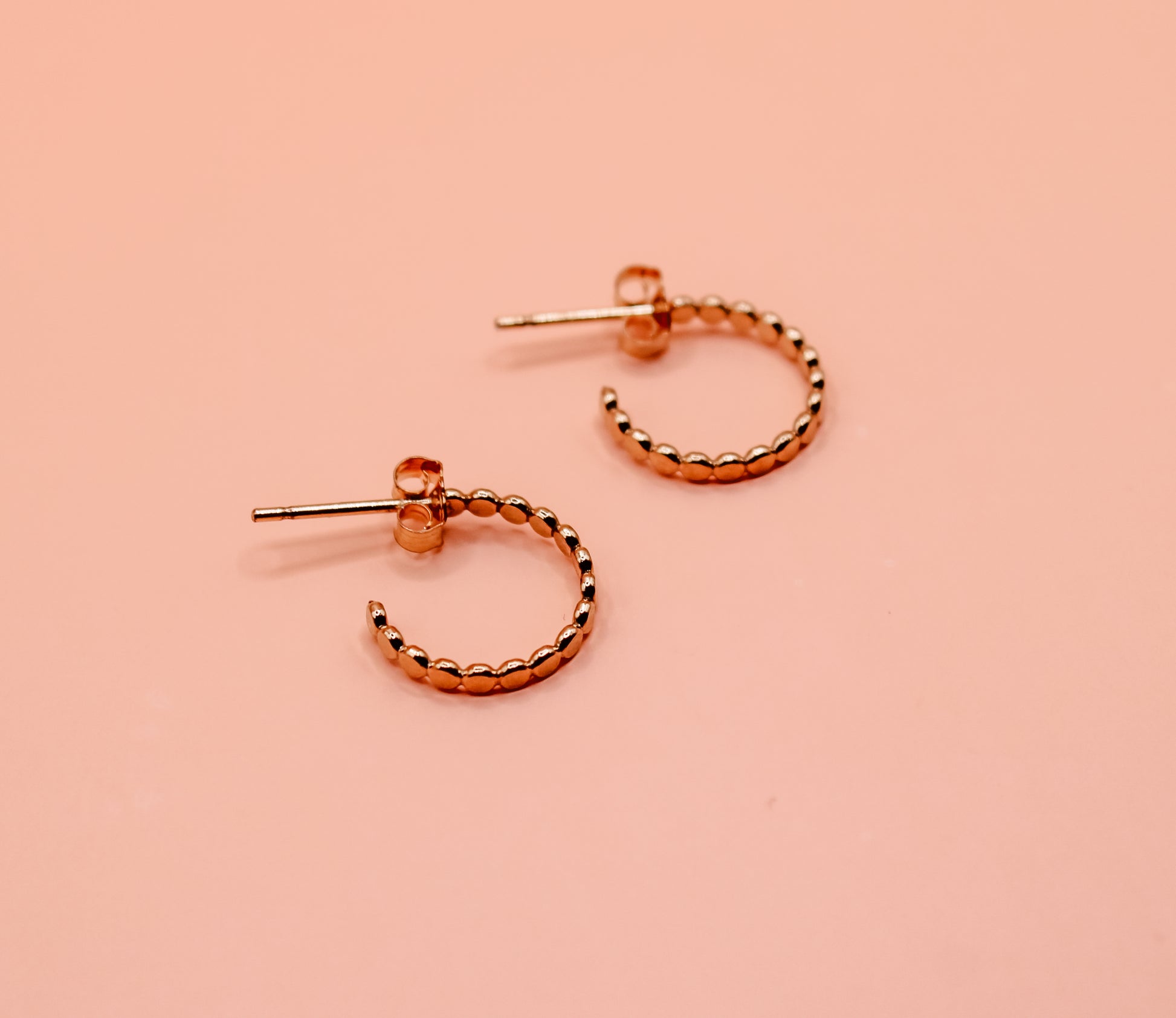 These earrings are made from high quality, tarnish resisting gold-filled material. They are durable, yet dainty and light. The huggie earring may be gently bent to comfortably fit around your earlobe. Please see our Care Instructions for information on how to maintain your piece for years to come.