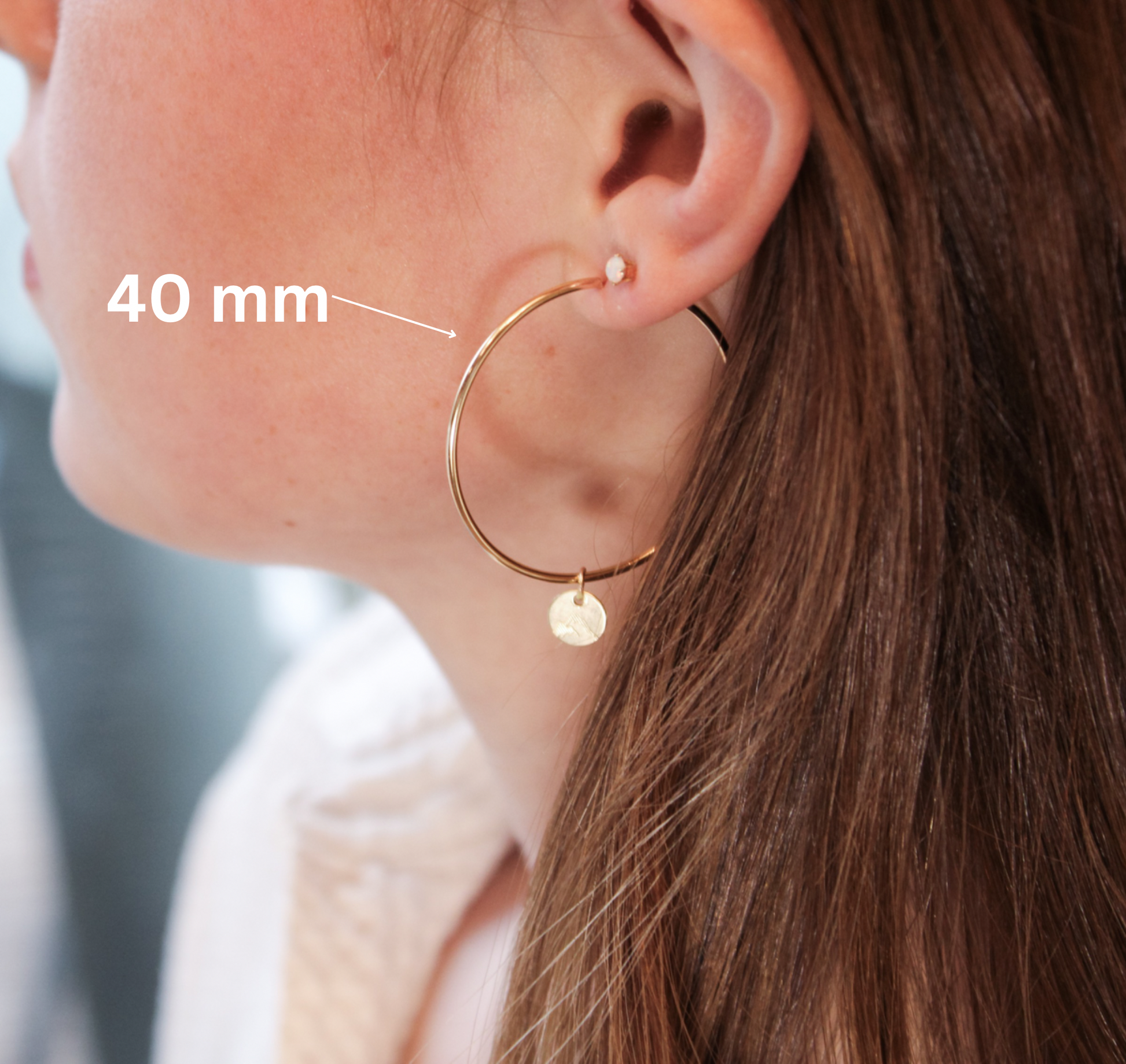Add on personalized gold-filled discs, with your choice of hand stamped birth flower, mountain, heart, north star, Grow in Grace flower, sunrise, or pine tree. You can add sets of hand-stamped discs on the Extras page. Please remember to specify which earrings they should be added to, or they will come unattached, and you will have to slide them onto your earrings of choice. Pictured are the 16mm hoops with heart disc add ons.