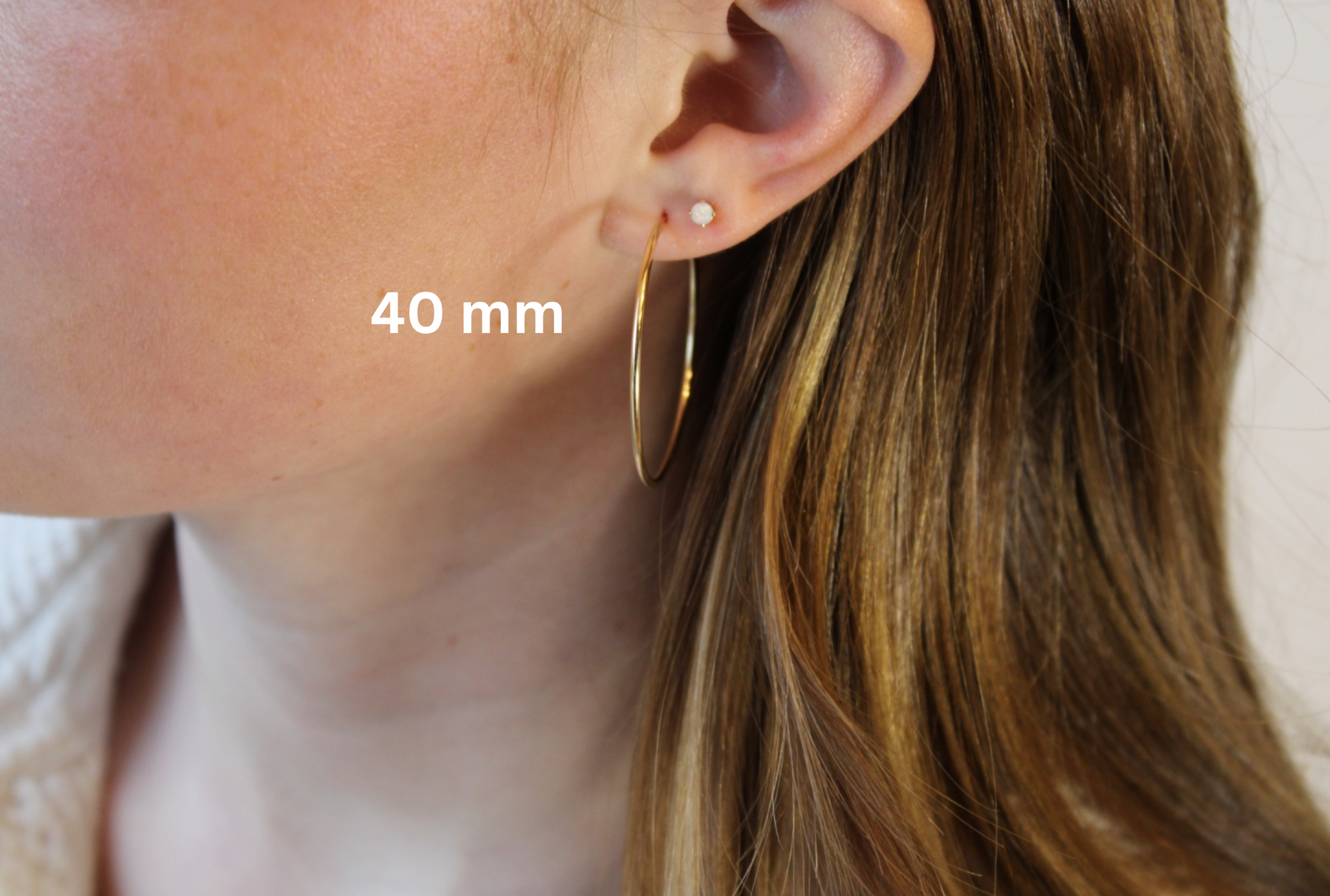 From left to right, starting with the smallest hoops: 16mm, 20mm, 24mm, 27mm, 30mm, and 40mm.