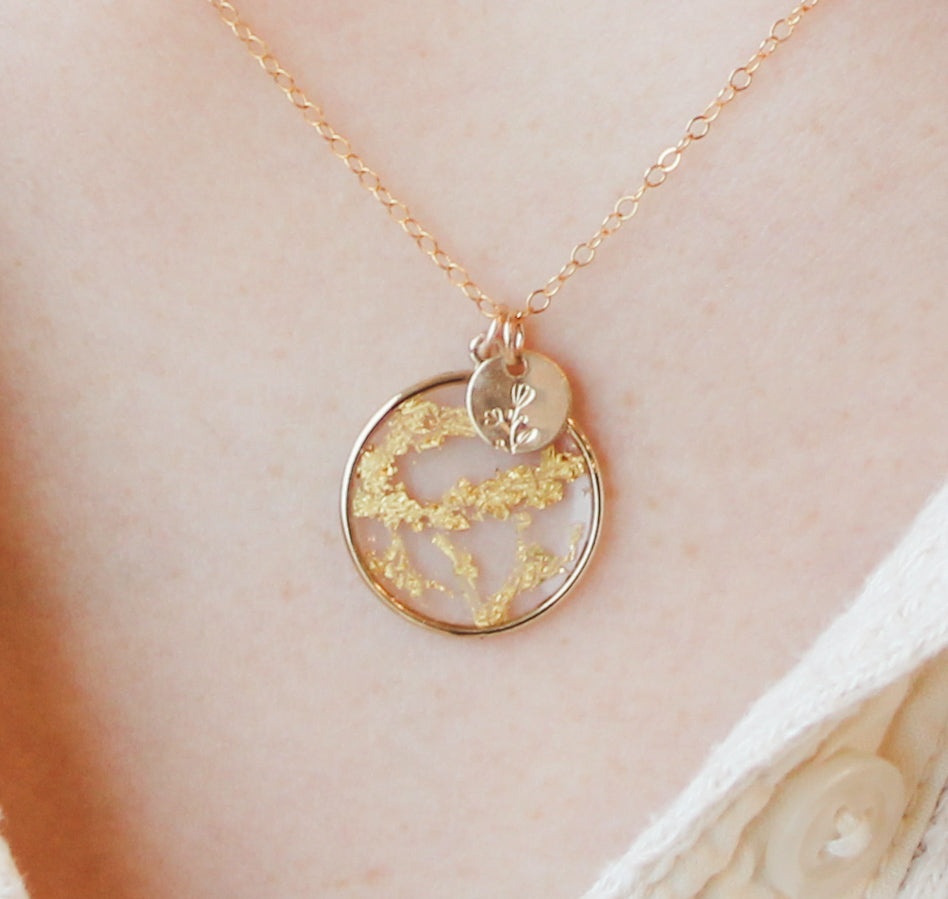 These necklaces are hand-crafted with gold filled materials, resin, and 23k gold leaf to ensure quality pieces that if cared for properly can last for many years. Please see our Care Instructions to maintain your piece for years to come. Just like each person is beautifully unique, each Grow in Grace piece is individually handcrafted and designs of Kintsugi will vary. No two pieces are exactly the same.