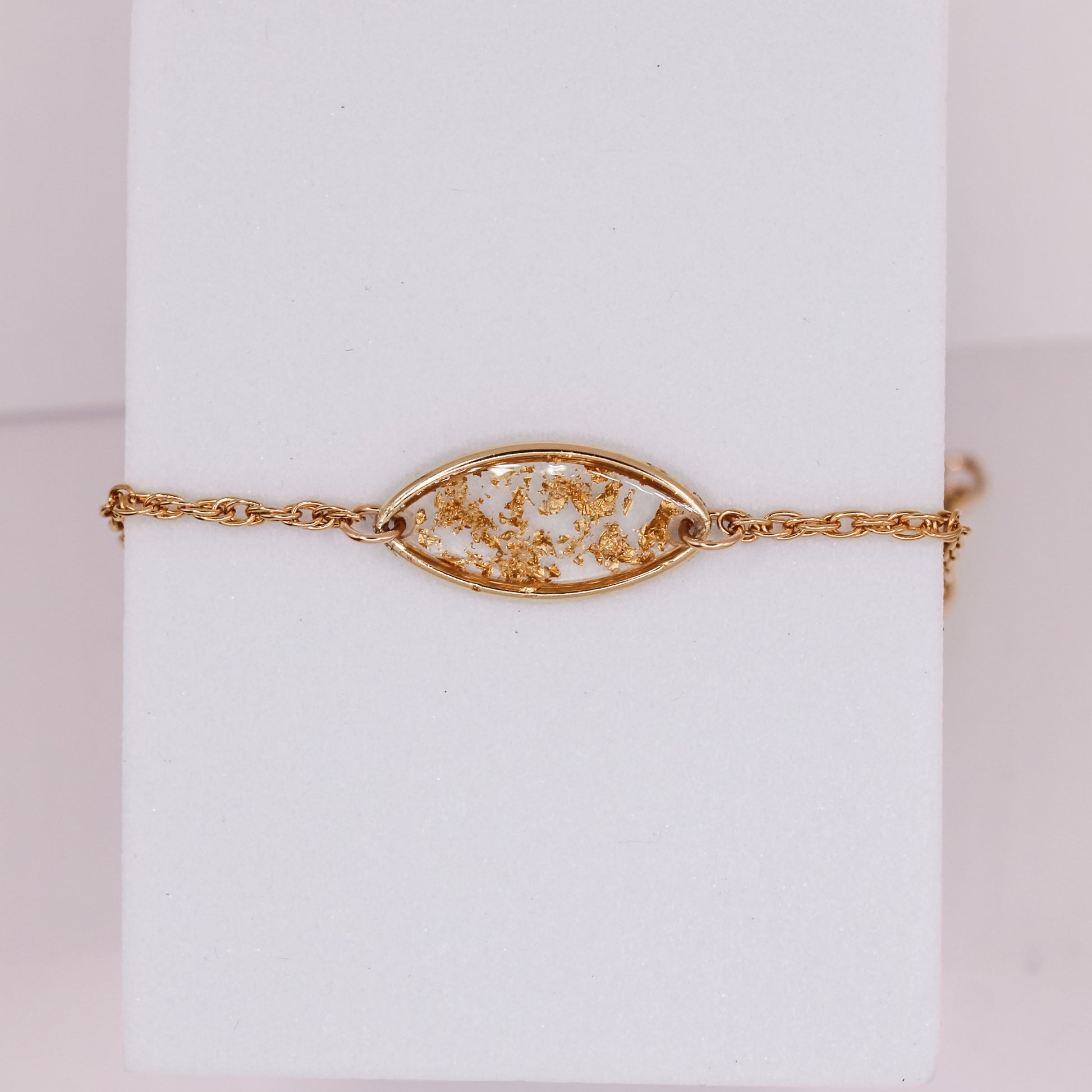 This bracelet is made with quality gold-filled materials, resin, and 23k gold leaf. The bracelets come with a .5 inch extender to adjust your fit. Just like each person is beautifully unique, each Grow in Grace piece is individually handcrafted. No two pieces are exactly the same and Kintsugi designs will vary. Please see our Care Instructions for information on how to maintain your piece for years to come.