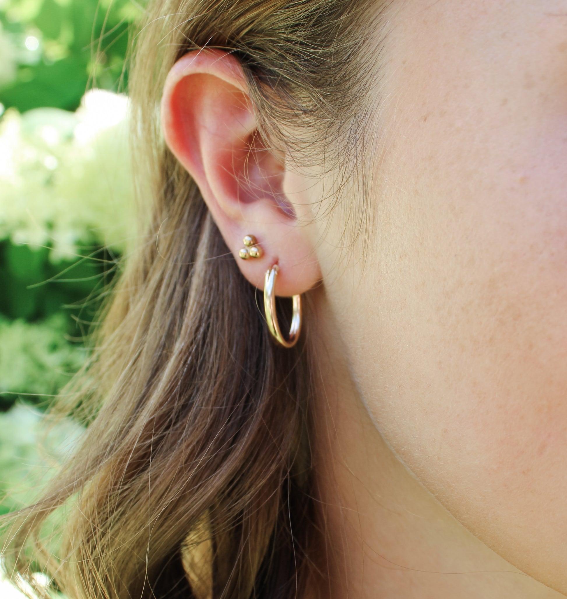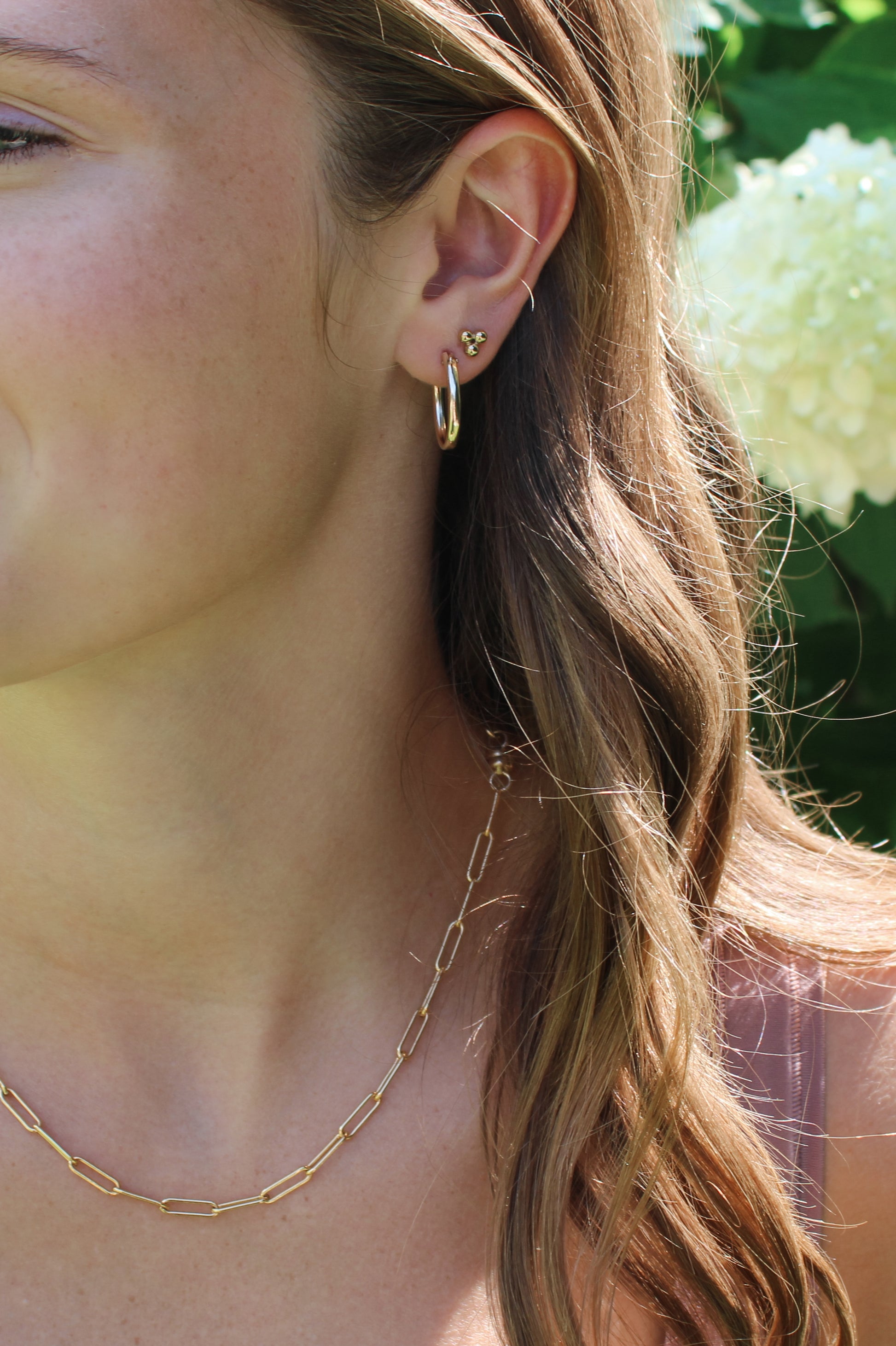 These beautiful earrings are 19mm oval hoops, made from high quality, tarnish resisting gold-filled material. Please see our Care Instructions for information on how to maintain your piece for years to come.