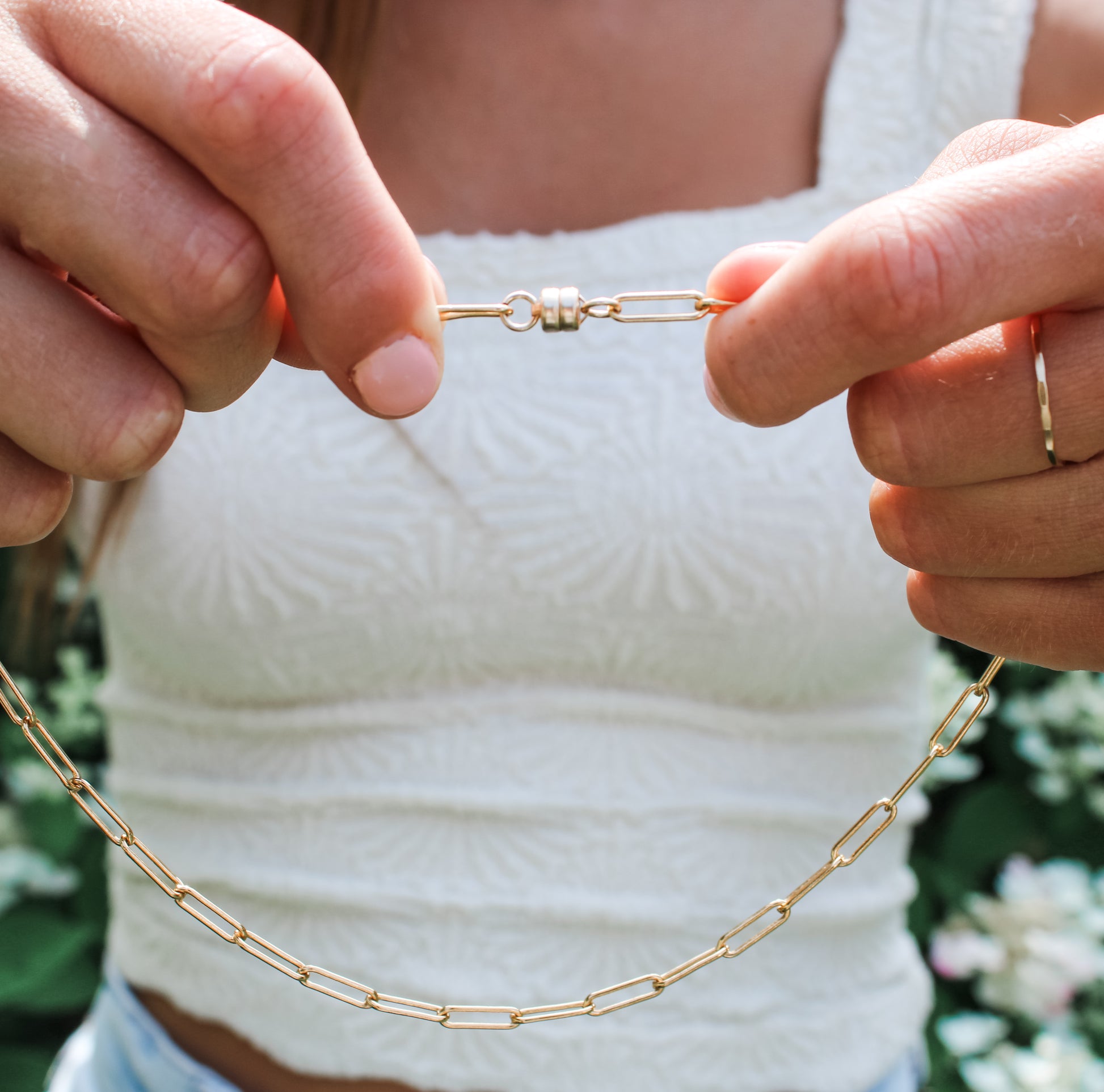 These magnetic clasps can be purchased in gold-filled or sterling silver as an upgrade for a necklace or bracelet in your cart. These clasps will be added instead of a regular clasp to the item you specify.