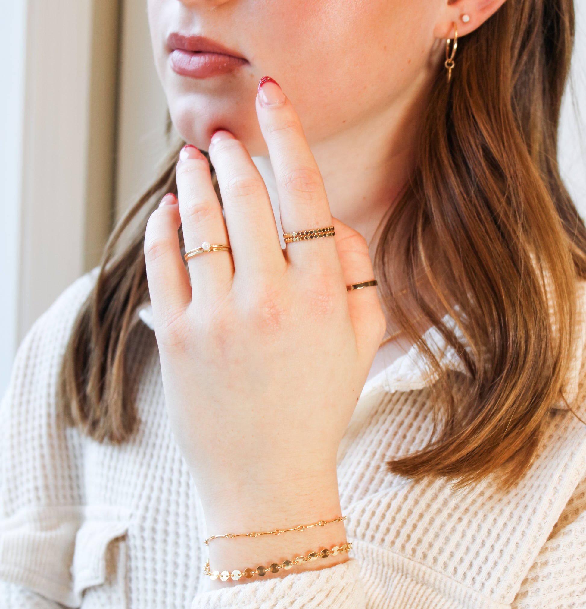 Bracelets have a 1 inch extender. This piece is made from gold-filled materials. Please see our Care Instructions for information on how to maintain your piece for years to come.
