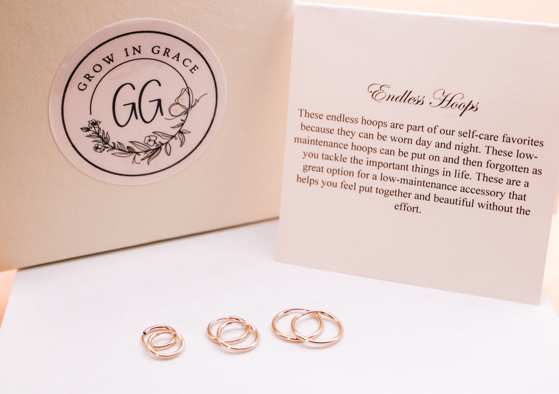 These endless hoops are part of our self-care favorites because they can be worn day and night. These low-maintenance hoops can be put on and then forgotten as you tackle the important things in life. These are a great option for a low-maintenance accessory that helps you feel put together and beautiful without the effort.
